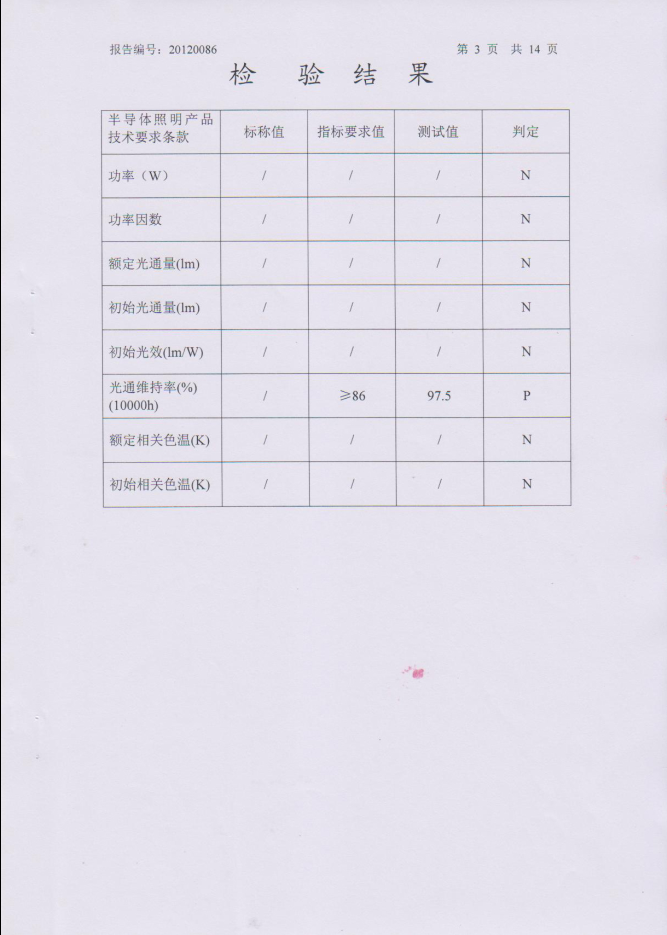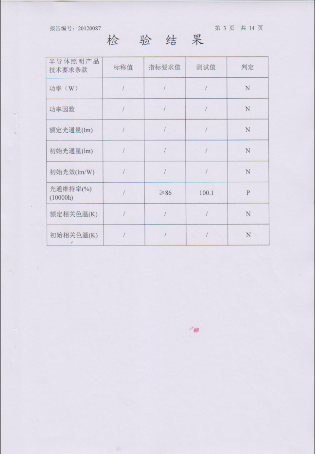 我公司生產(chǎn)的LED照明燈具經(jīng)國家電光源檢測(cè),10000小時(shí)光通量維持率分別達(dá)到